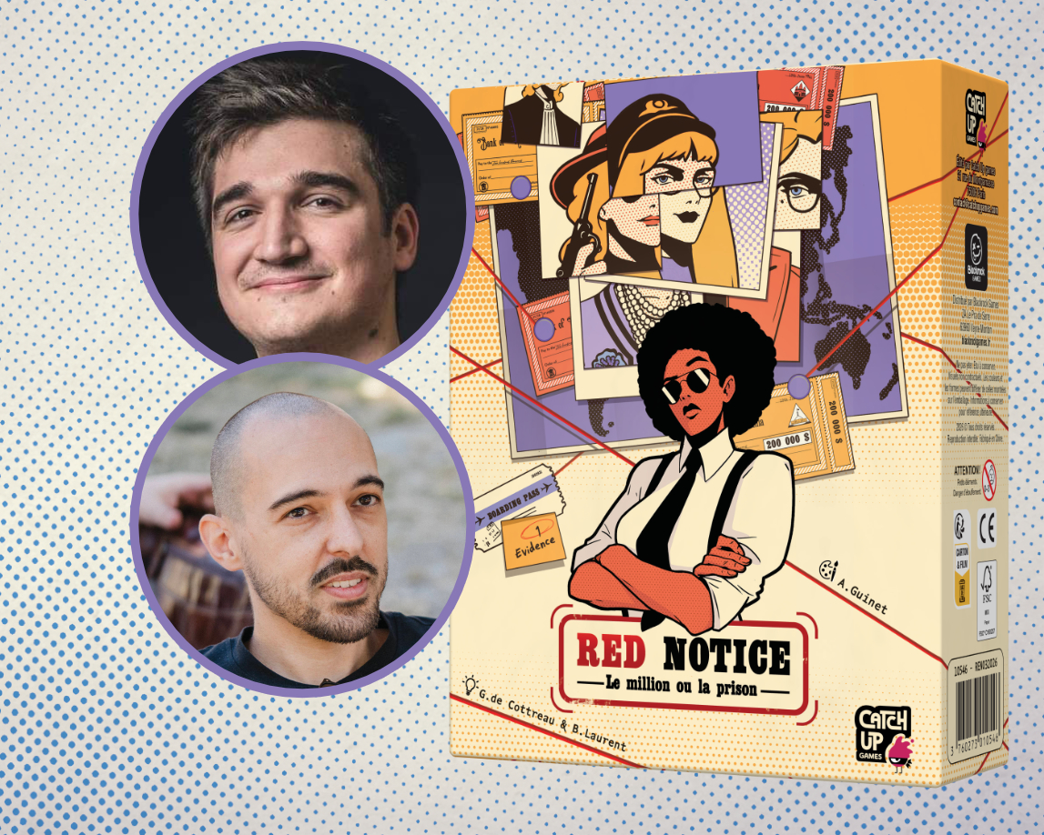 Come to the Catch Up Games booth to get your copy of Red Notice (or a free poster) signed and chat about the game with Gautier de Cottreau and Baptiste Laurent.