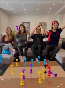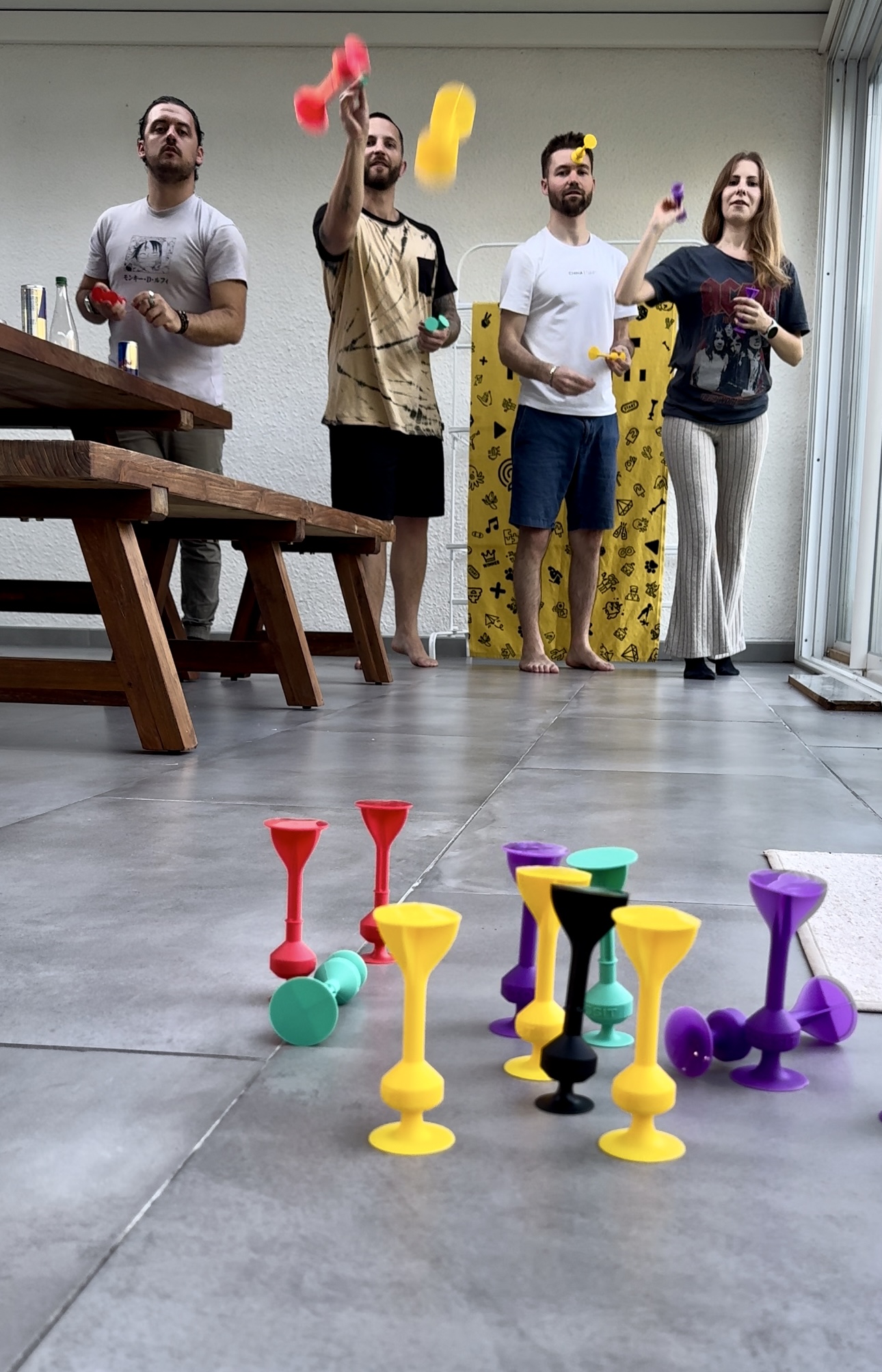 Tossit can be played wherever the suction cups stick. So, stop looking for a petanque strip, a dartboard, find the nearest flat surface and start to play right away. ⚡️ The floor is definitely not the only option. These surfaces can work too: table, countertop, fridge door, windows, wall, car, ping-pong table, white board, billboard, etc.