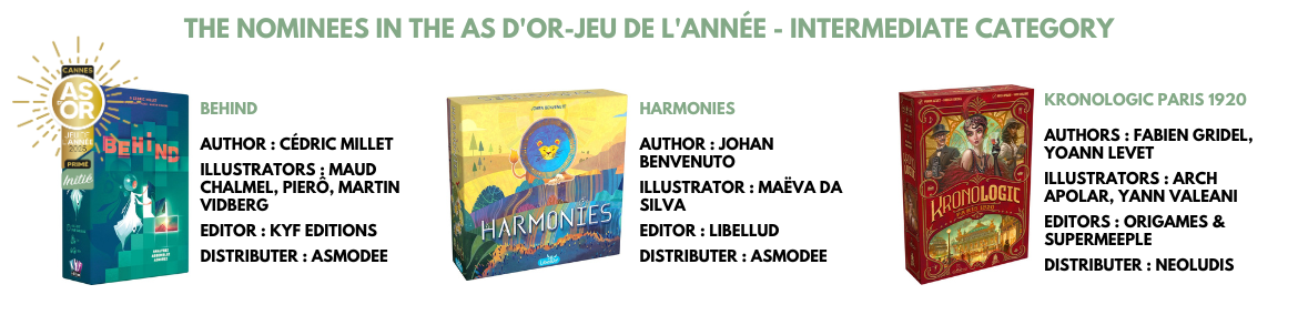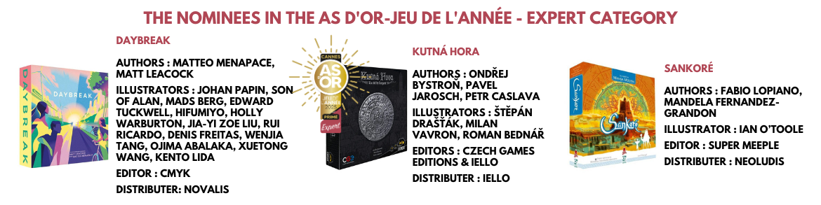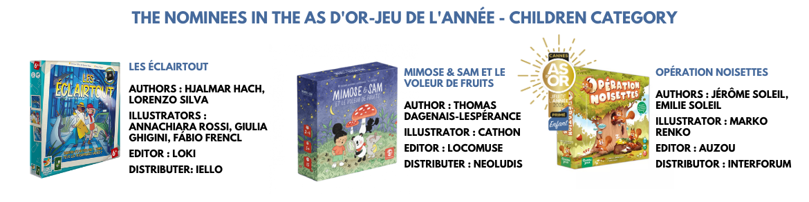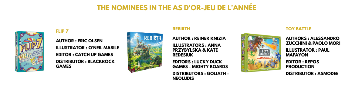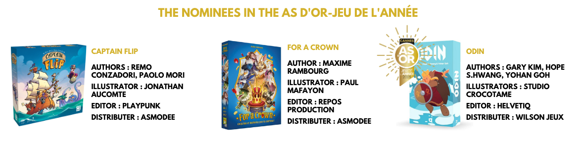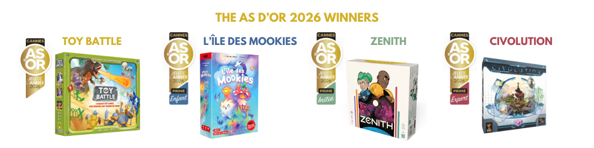 “As d'Or-Jeu de l'Année” : the preeminent cultural label for board games. It rewards the best board games of the French market published over the year.