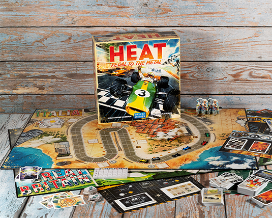 Based on simple and intuitive hand management, Heat: Pedal to the Metal puts you in the driver’s seat of intense car races. You are jockeying for position to cross the finish line first, while managing your car’s speed if you don’t want to overheat. Experience the thrill of a single race or use the Championship System to play a whole season in one game night, customizing your car before each race to claim the top spot of the podium.
