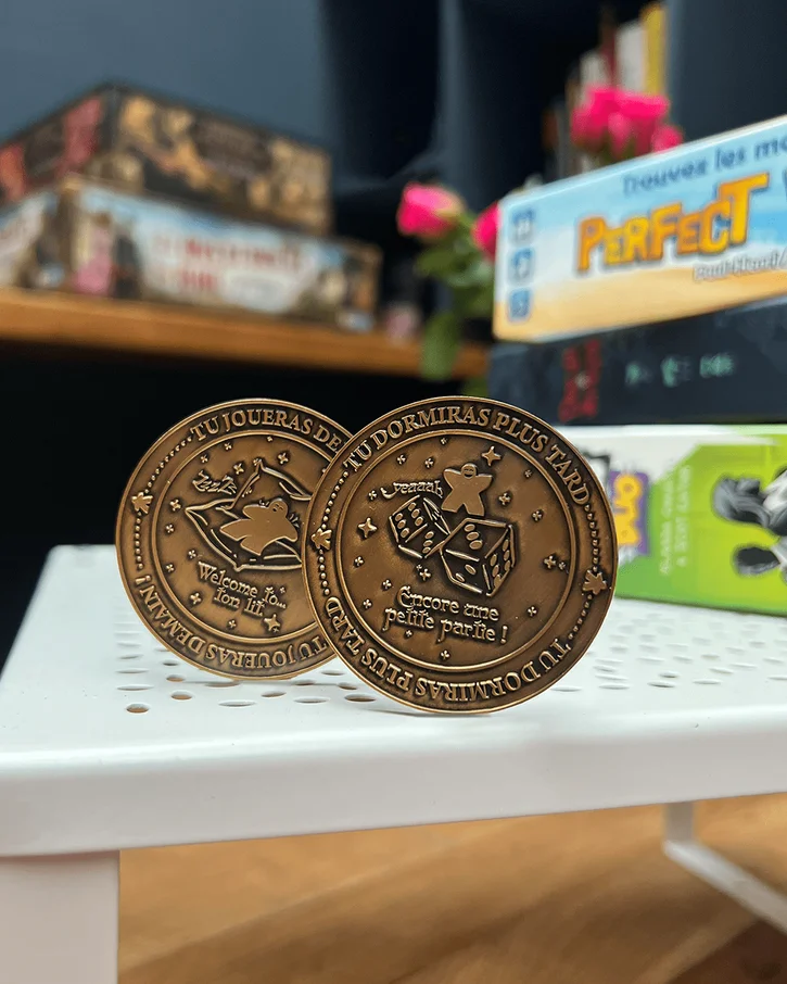 Des créations originales uniques dessinées et imaginées par nos soins : pin’s émaillés à collectionner & pièces en métal pour les décisions cruciales. De quoi ramener un souvenir ludique ou gâter un autre passionné de jeu ❤