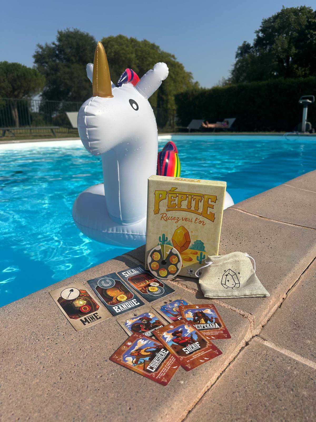 Dans Pépite, le désert regorge d’or et tous les regards sont braqués sur les mines. Chaque joueur gère une ville du Far West, incarne ses personnages principaux et ruse pour faire fructifier son butin. À chaque tour, un personnage et un lieu d’action sont joués en simultané, entre mine, saloon adverse ou banque. On transporte l’or, on vole ses adversaires, on protège sa ville… en gardant en tête que chaque personnage ne peut être utilisé qu’une seule fois par manche et que les mines peuvent exploser à tout moment. À partir de la deuxième manche, de nouveaux personnages viennent enrichir les stratégies et compliquer les choix.