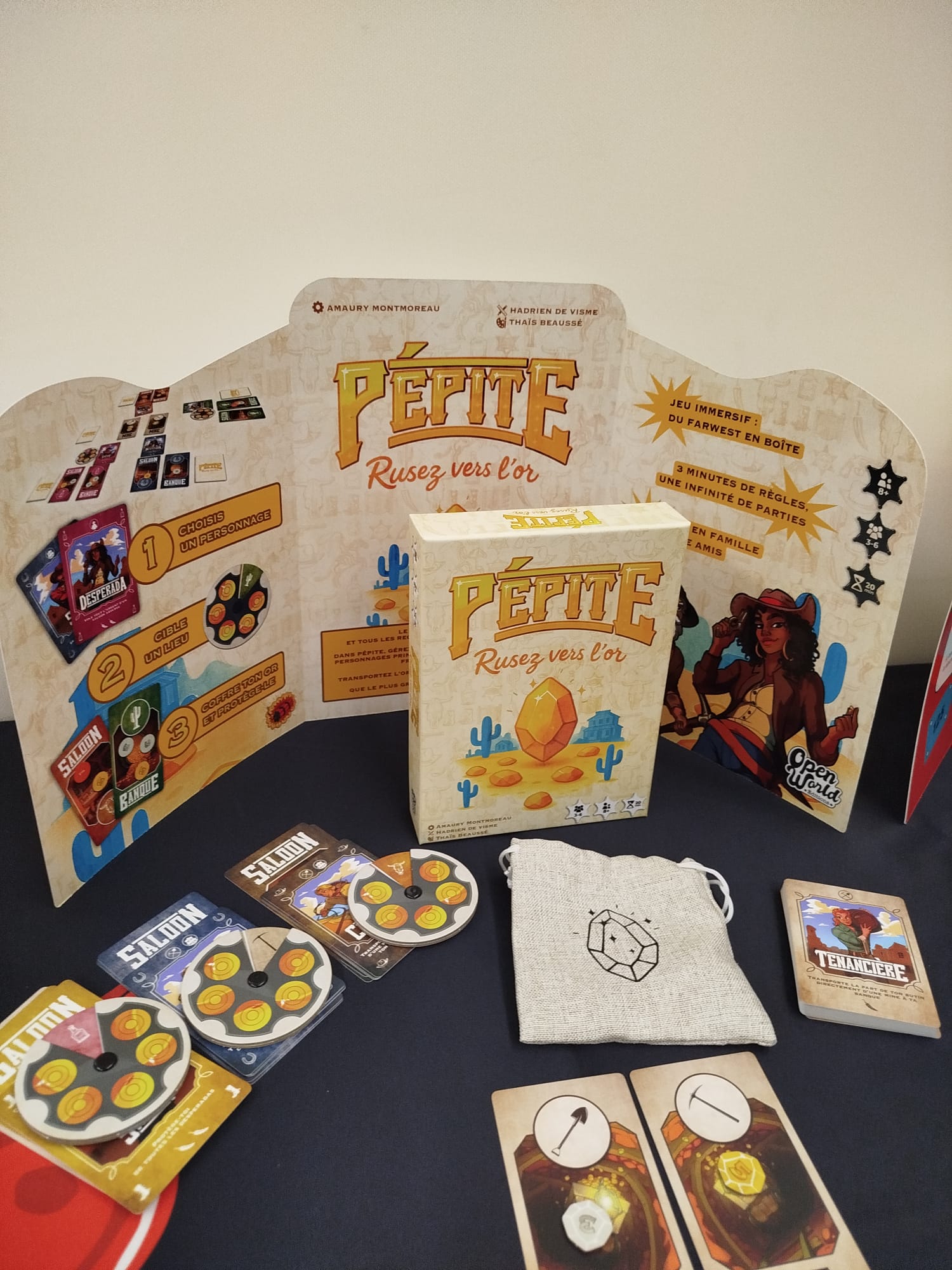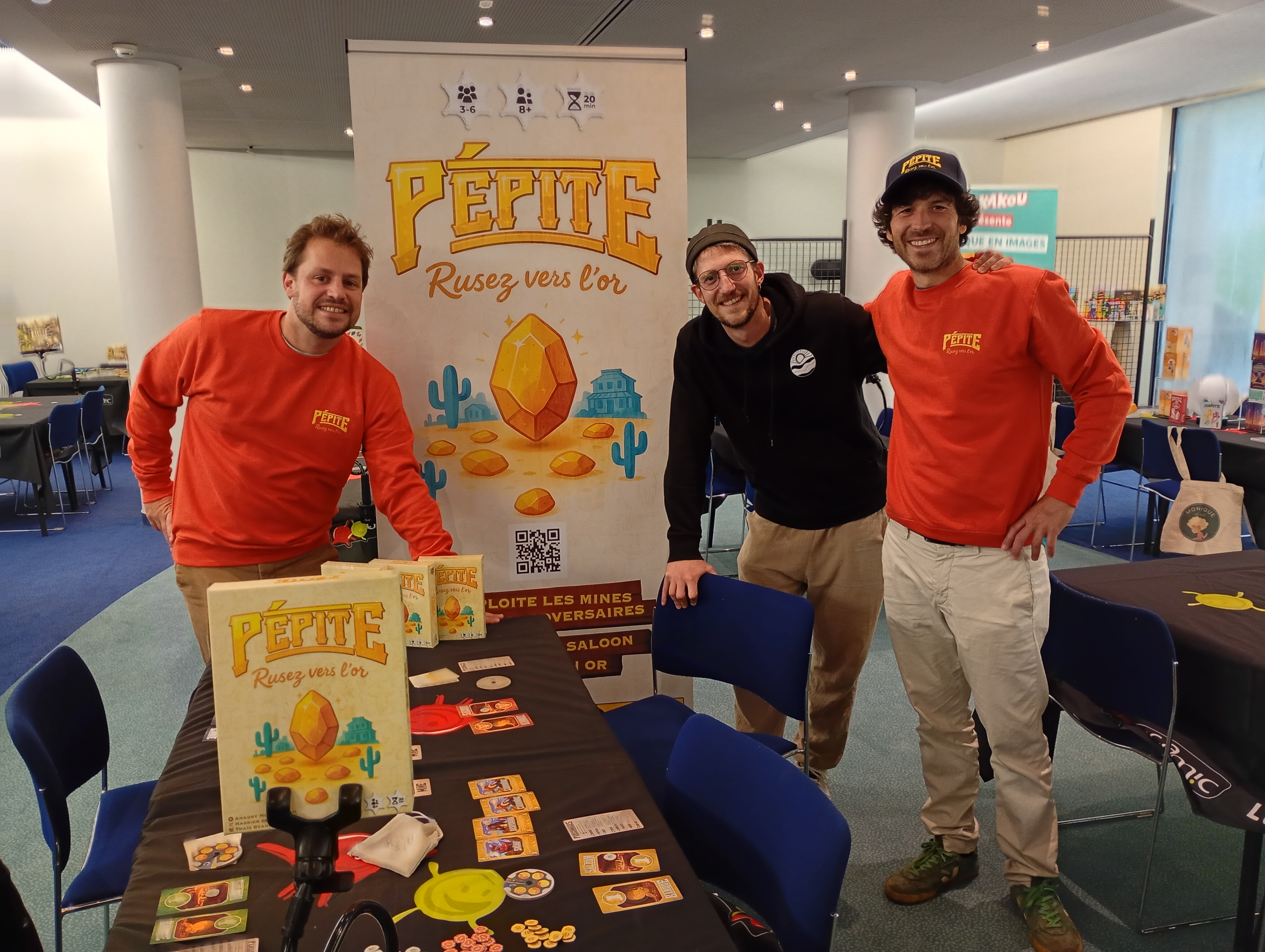 Pendant le festival, vous pourrez nous retrouver dans notre saloon, au stand 20.03, au sein de l’espace Gigamic. Passez nous saluer, vous asseoir, jouer une partie ou simplement observer une table en pleine négociation douteuse. Un tournoi de Pépite sera organisé durant l’événement, ainsi qu’une séance de dédicace avec l’auteur. Et oui, les jeux sont aussi vendus sur place, parce que repartir sans sa boîte, c’est un peu comme quitter le Far West sans poussière sur les bottes.