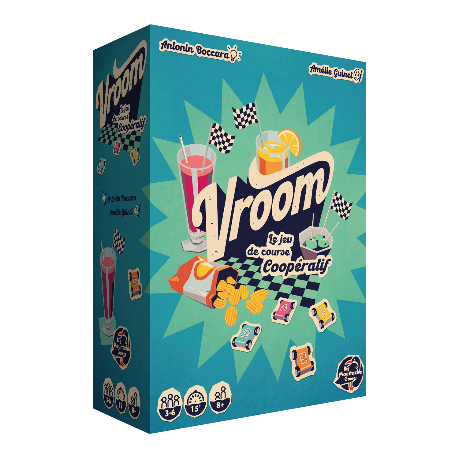 Vroom est un jeu de course coopératif qui se joue sans case ni plateau, où il faudra correctement estimer ses déplacements pour l'emporter. Un jeu fun et très original.