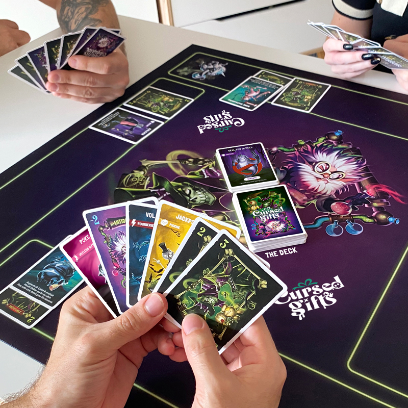 Le but du jeu est de remplir la maudite jauge de ses adversaires pour les éliminer du jeu à l’aide de différents types de cartes : fourberies, défenses et pioche. Mais surtout, il faut offrir un max de Maudits Cadeaux !
