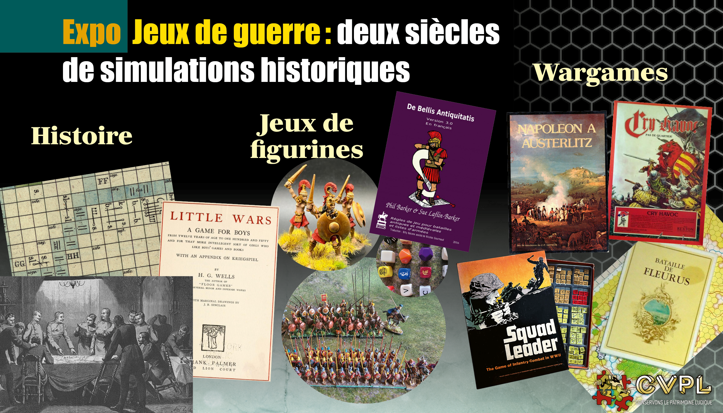 L'idée de représenter les batailles sur des cartes topographiques, apparue au XIXe siècle, marque deux avancées dans l'histoire ludique : la naissance des jeux de simulation, et les prémices de l'usage du jeu pour la formation. L'exposition proposée par l'Association pour la Conservation, l’Étude et la Valorisation du Patrimoine Ludique retrace l'évolution de ceux que l'on appelle souvent les « wargames », méconnus de nombreux joueurs, qui ont contribué à moderniser les jeux de société et à se passionner pour l'histoire, de l'Antiquité à la guerre moderne.
