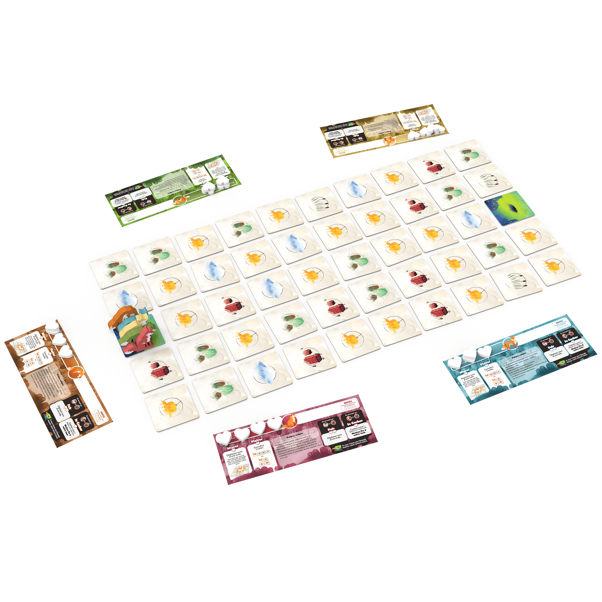 Ils jouent à tour de rôle et une partie prend fin dès qu'un renard parvient à se placer sur la tuile terrier d'arrivée.