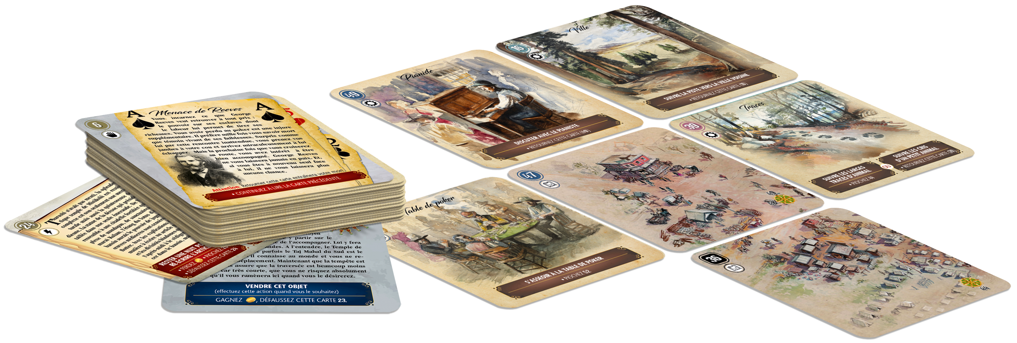 Cartaventura est une collection d’aventures historiques au format poche, façon « livre dont vous êtes le héros ». À l’aide de cartes qui proposent différentes options, voyagez, explorez et faites les bonnes rencontres afin d’offrir la meilleure fin possible au héros que vous incarnez. Chaque scénario se déroule dans un lieu et une époque différents de l’Histoire.