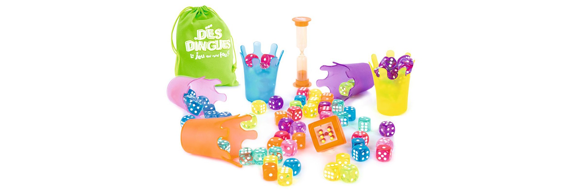 le jeu qui rend fou Soyez le plus rapide, le plus malin et raflez tous les dés en un temps record dans une ambiance de folie… Lancez, Attrapez, Gagnez ! A vous de jouer ! Secouez votre shaker, lancez vos dés sur la table et récoltez le maximum de dés avec le chiffre indiqué par le dé électronique dans un temps record ! Complexifiez vos parties avec les 7 règles proposées. Qui sera le ROI ou la REINE DES DINGUES ?