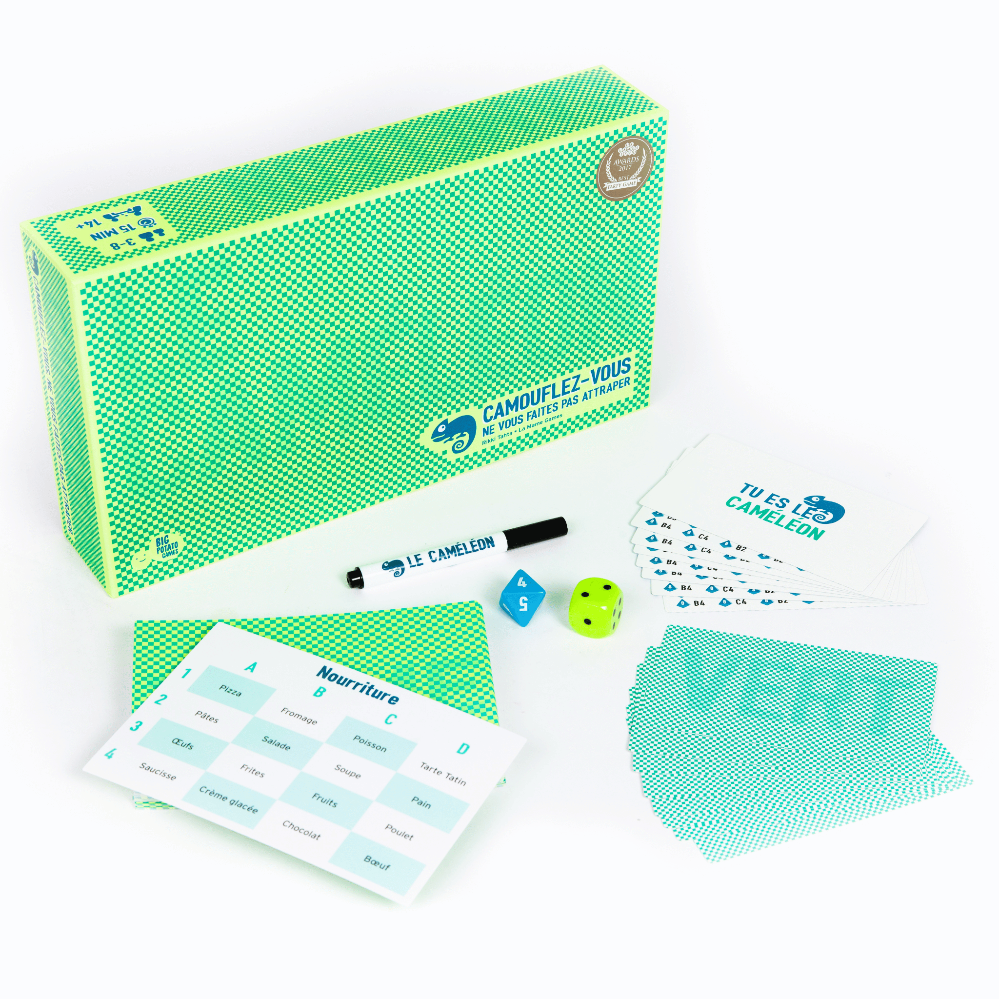 À chaque tour, une carte "thème" est posée au milieu de la table et désigne un mot secret. Tous les joueurs savent quel est ce mot, sauf celui qui a la carte Caméléon... Mais qui est-il ? Analysez les comportements, utilisez la ruse et la déduction.