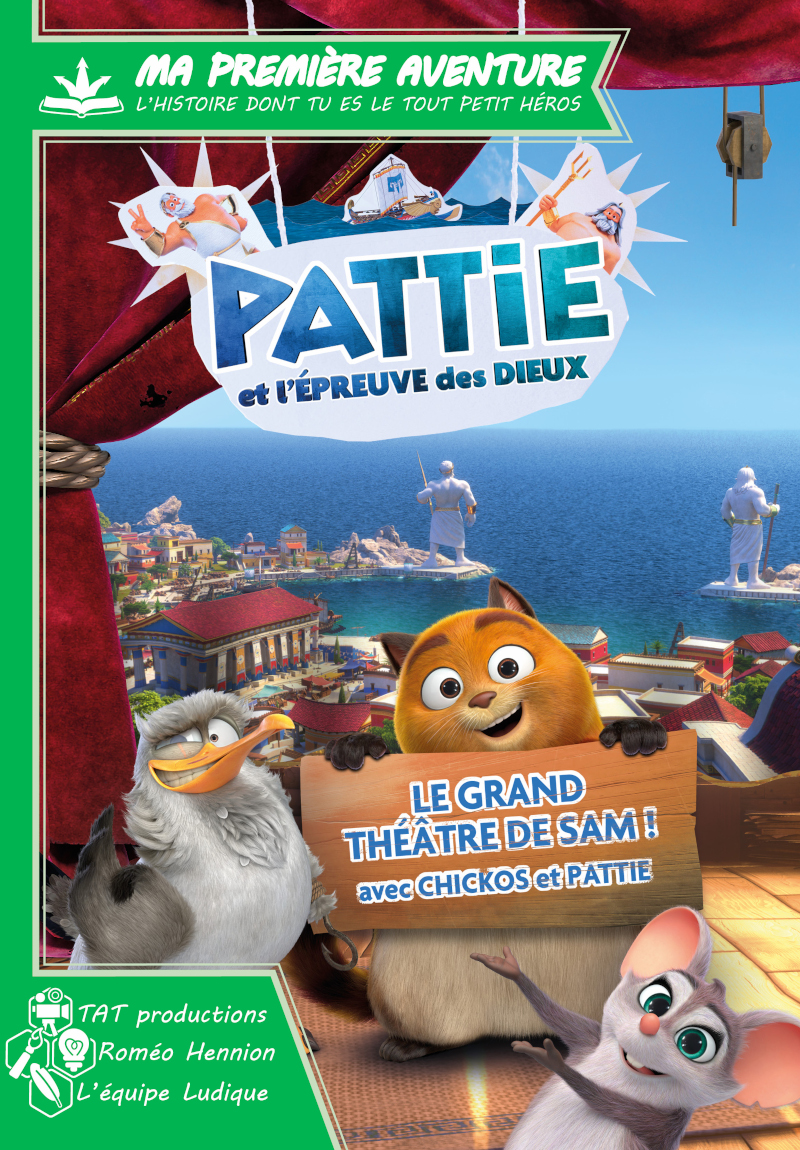 Ouvre le livre et choisis le personnage que tu souhaites incarner : Pattie la souris maline et curieuse, Sam le matou passionné de théâtre ou Chickos le baroudeur des airs?