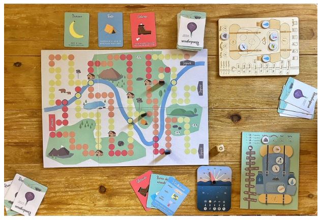 Pour cela, les joueurs parcourent une carte et peuvent jouer à tour de rôle des bonus / malus qui influenceront leur vitesse d’avancement, et celle des autres. Les joueurs pourront stocker dans leur sac à dos un tas de choses : de quoi dormir, manger et des équipements pour randonner malgré la météo.