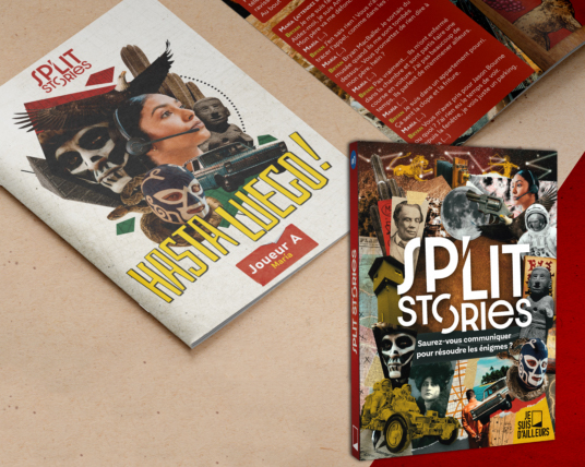 Dans Split Stories, deux équipes d’1 à 2 joueurs reçoivent chacune un livret qu’elles doivent se décrire pour résoudre une série d’énigmes.
